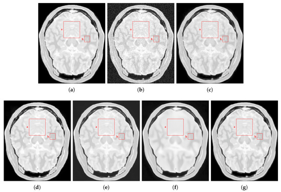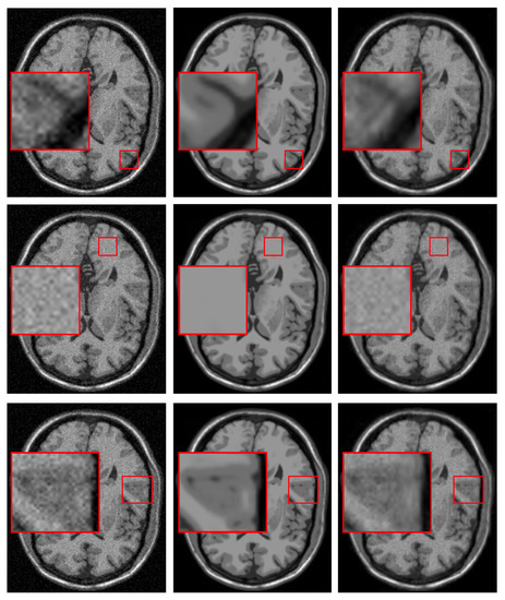 - Zhang, Y.; Yang, Z.; Hu, J.; Zou, S.; Fu, Y. MRI denoising using low rank prior and sparse gradient prior. IEEE Access 2019, 7, 45858–45865. [Google Scholar] [CrossRef]
