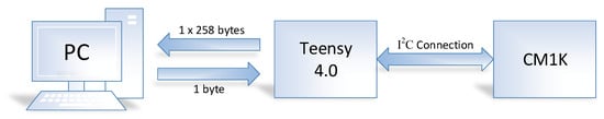 In Table 2, the differences in the times expressed in ms during the communication with a UART-USB, an INTEL CURIE and a TEENSY 4.0 standard converter are shown. The average value is of 1000 packages of 258 × 1 byte in the first row and in the second a single package of 258 bytes.
