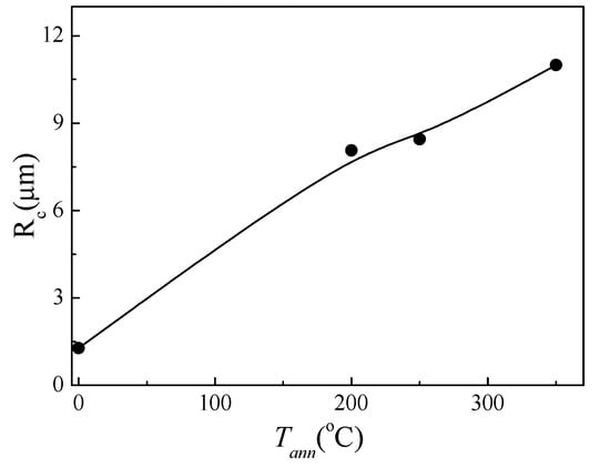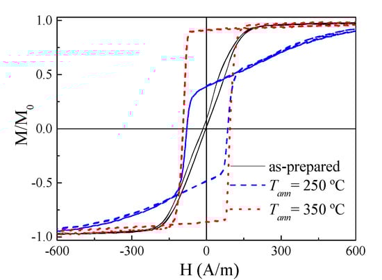 Accordingly, from Rc(Tann) dependence evaluated by using Equation (9), we can deduce that the inner axially magnetized core radius, Rc, increases after annealing, as shown in Figure 4.