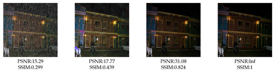 - Li, Y.; Tan, R.T.; Guo, X.; Lu, J.; Brown, M.S. Rain streak removal using layer priors. In Proceedings of the IEEE Conference on Computer Vision and Pattern Recognition, Las Vegas, NV, USA, 26 June–1 July 2016; pp. 2736–2744. [Google Scholar]