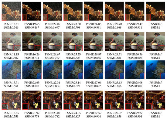 - Wang, Z.; Bovik, A.C.; Sheikh, H.R.; Simoncelli, E.P. Image quality assessment: from error visibility to structural similarity. IEEE Trans. Image Process. 2004, 13, 600–612. [Google Scholar] [CrossRef] [PubMed]