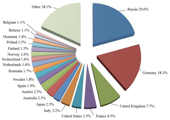 OSM is a collaborative crowdsourced map program, which aims to create a free map. Anyone worldwide can contribute to OSM. Volunteers from 230 institutions and countries upload data to OSM every day. Hence, the OSM data are large-scale and widely geographically distributed. These data can be used as annotation sources for the sustainable labeling of global remote sensing images. Figure 4 shows the distribution of POI data worldwide. Russia has POI coverage of up to 21%, due to its extensive land area and local taxi companies and travel agencies contributing their data. Germany follows with 18.3%. The U.K., France, the U.S., and other countries also have a greater proportion. Hence, we can yield balanced geo-labels for remote sensing images by controlling the ratio of POIs from different regions worldwide.