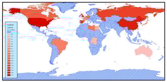 Figure 5 shows the geographical and quantitative distribution of the selected POI data in major countries and regions. The darker areas indicate a greater amount of POI data, and the blue areas indicates those that RSI-CB has not yet selected. Among them, the U.S., China, and the U.K. feature the largest amount of data, including the categories of agricultural land, construction land and facilities, transportation, and facilities, as well as other large categories. At the same time, the Brazilian woodland, Egyptian desert, and Canadian snow have different distributions.