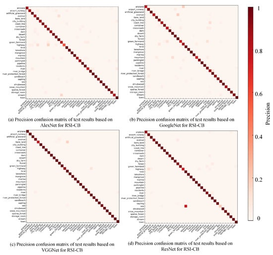 Precision confusion matrix of test results based on DCNN models for RSI-CB.