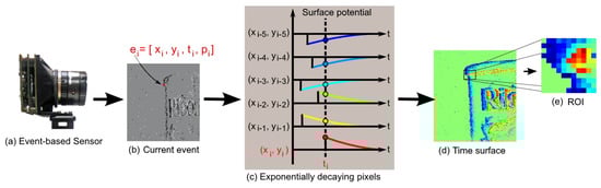 - Lagorce, X.; Orchard, G.; Gallupi, F.; Shi, B.E.; Benosman, R. HOTS: A Hierarchy Of event-based Time-Surfaces for pattern recognition. IEEE Trans. Pattern Anal. Mach. Intell. 2016, 8828. [Google Scholar] [CrossRef]