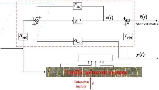 This section introduces the design of the reduced-order unknown-input state observer for the augmented dynamic traffic model of vehicle density estimation. The essence of the state observer design is to accurately reconstruct vehicle densities and estimate the unknown inputs for the system , such that the following conditions are satisfied: