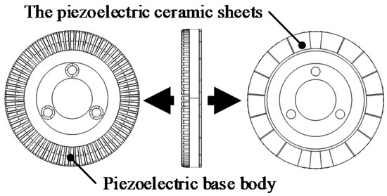 As shown in Figure 3, the piezoelectric stator is composed of the piezoelectric base body and the piezoelectric ceramic sheets. Alternating voltages with the same frequency and amplitude, but a phase difference of 90° is applied to the two phases of the piezoelectric ceramic sheets.