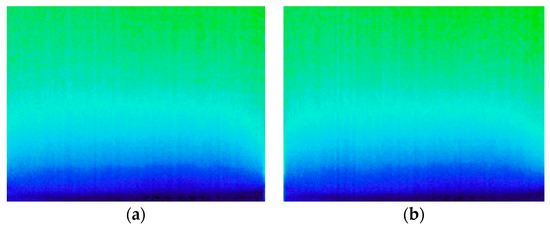 Image subtraction was carried out considering, as a reference, the first thermal image taken immediately after the humidification period began (Figure 2a) and by subtracting each image from the previous one. The temperature matrix of each thermal image was exported, and, after the pixel-by-pixel subtraction procedure, the new images were created using specific imaging software.