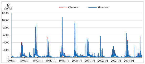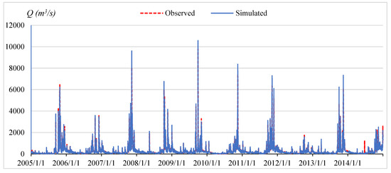 The validation water discharge at the Nong Son hydrological station during 2005–2014.