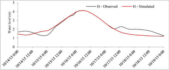 The calibration water level at the Cau Lau hydrological station at the VGTB river basin during October 14–19, 2015 flood event.