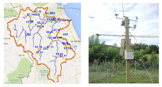Meteorological stations network on the Vu Gia-Thu Bon river basin [22] (reproduced with permission from Nguyen Thi Hong, Phan Thi Thanh Truc, Nguyen Duy Liem, and Nguyen Kim Loi, International Journal on Advanced Science Engineering Information Technology; published by Indonesian Society for Knowledge and Human Development, 2016).