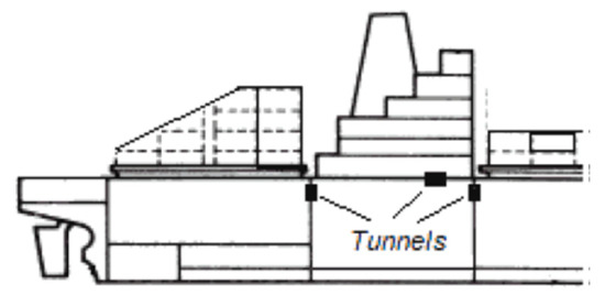 The wireless communication on board vessels is limited by several factors. Metallic structure of bulkheads and watertight doors severely decrease the power of received radio signals. Moreover, due to the metallic environments on board ships, propagation effects like the multipath can be a serious cause of received signal degradation [9]. The solution can be the installation of repeater nodes to overcome metal obstacles. They can be installed in dedicated tunnels in the partition walls (Figure 3). These tunnels help solve the problems of the aforementioned limitations in wireless communication by metal structures on the ship.
