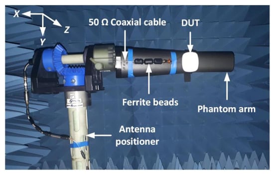 - Feliziani, M.; Maradei, F. Antenna design of a UHF RFID tag for Human Tracking Avoiding Spurious Emission. In Proceedings of the 2012 IEEE International Symposium on Electromagnetic Compatibility, Pittsburgh, PA, USA, 6–10 August 2012; pp. 245–248. [Google Scholar]