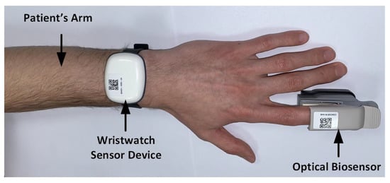 The Internet of Things (IoT) is a network of internet-connected devices that contain embedded sensors and actuators to communicate with the external environment []. Because of its widespread applications in various areas, such as in healthcare, agriculture, sports and security, the number of internet-connected devices is increasing at a rapid rate [,]. The IoT market is growing continuously, and it is expected that, by 2025, global IoT market revenue will rise to around 1.6 trillion U.S. dollars (USD) []. The IoT-enabled wearable sensor devices have become a promising technology that enables applications such as continuous wireless monitoring of vital physiological parameters such as arterial oxygen saturation (SpO2) and heart rate (HR) []. Among the various wearable devices available, it is forecasted that the end-user spending on smartwatches could exceed 27 billion USD in 2021 [].