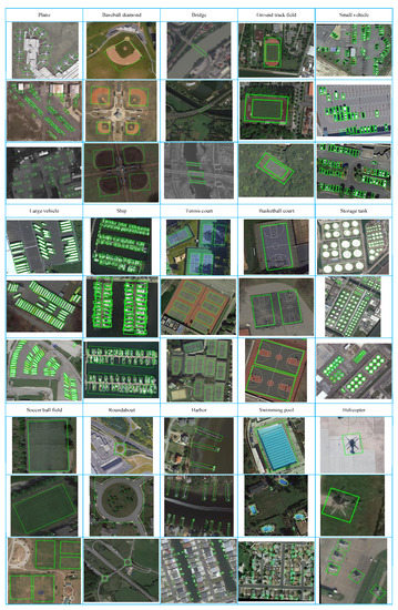 An insightful understanding in very high resolution (VHR) aerial images (20 cm–30 cm resolution) can be available under imagery analysis for geospatial areas [1,2]. Object detection, a critical component of automatic aerial imagery analysis, plays an important role in national defense construction, urban planning, environmental monitoring and so on [3,4,5]. Although many object detection methods in VHR aerial images have been proposed before, this task is still full of great challenges due to arbitrary orientations and large scale variations with various background. Recently, with the rapid development of convolutional neural networks (CNNs), a variety of CNN-based object detection frameworks [6,7] have been proposed and very impressive results have been achieved over natural benchmarks including PASCAL VOC [8] and MS COCO [9]. The existing CNN-based object detection methods can be commonly divided into two parts: two-stage methods and single-stage methods. In the two-stage methods, the input image in the first stage contributes to the generation of category-independent region proposals, and subsequently features of these regions are extracted, then the refinement of category-specific classifiers and regressors is achieved for classification and regression in the second stage. Finally, accurate detection results are attained with the deletion of redundant bounding boxes, such as non-maximum suppression (NMS). Region-based CNN (R-CNN) [10] is a pioneering work. Its reformative version SPP-Net [11], Fast-RCNN [12] makes it possible to simplify learning and runtime efficiency. Faster-RCNN [6] integrates the proposed Region Proposal Network (RPN) and Fast R-CNN into a unified network by sharing convolution weights, which makes object detection quick and accurate in an end-to-end manner. Zhang et al. [13] proposed a multiscale cascaded object detection network and introduce multiscale features in pyramids to obtain feature of each scale with a novel attention method, which can highlight the object features and efficiently detect objects for traffic sign with complex background. Many high-performance detection methods are also proposed until now, such as FPN [14], R-FCN [15], Mask-RCNN [16], Libra RCNN [17], Trident-Net [18], and so forth. In addition, the single-stage methods directly consider object detection as a regression problem, without the procedure of proposal generation, which can perform nearly real-time achievement. YOLO [19] and SSD [20] are popular in single-stage methods, which maintained real-time speed with ensured detection accuracy. RetinaNet [7] proposes a new focal loss function to address class imbalance issue of single-stage approaches. Inspired by the two-stage methods, RefineDet [21] can adjust the sizes of anchors and locations with the adoption of cascade regression and the application of an Anchor Refinement Module (ARM), and then filter out easy negative anchors to improve accuracy.