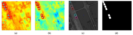 Visualization of the attention network of DPFAN. (a) Input feature map of DPFAN; (b) Output feature map of DPFAN; (c) Ground truth; (d) Binary mask map as supervised information for attention network.