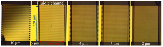 - Markovic, T.; Bao, J.; Maenhout, G.; Ocket, I.; Nauwelaers, B. An Interdigital Capacitor for Microwave Heating at 25 GHz and Wideband Dielectric Sensing of nL Volumes in Continuous Microfluidics. Sensors 2019, 19, 715. [Google Scholar] [CrossRef]