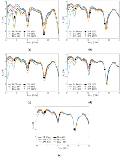 - Bao, X.; Ocket, I.; Crupi, G.; Schreurs, D.; Bao, J.; Kil, D.; Puers, R.; Nauwelaers, B. A planar one-port microwave microfluidic sensor for microliter liquids characterization. IEEE J-ERM 2018, 2, 10–17. [Google Scholar] [CrossRef]