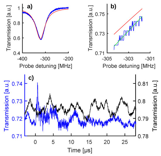 The probe laser was then set on the half-maximum wavelength work-point and the wavelength scan stopped, obtaining a baseline trace (black curve in Figure 2c). As a result of the resonance wobble, the work-point did not remain fixed on the half-maximum and moved along the resonance fringe: this baseline movement did not constitute a problem for the experiment, since the PA signal evolved on a much shorter time scale, as is shown in the following. It is important to highlight that these baseline traces represent the zero signal of the experiment, since they were recorded while the pump laser was disabled and therefore no PA wave was generated.