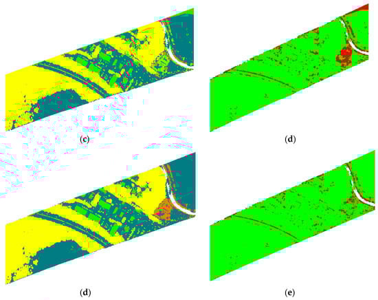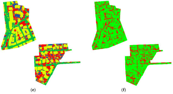 In order to study the sensitivity of the parameter for our method, other parameters are set to be constants. Experiments are conducted to analyze the effect of the parameter , which is varied from 2 to 12 with a step of 2 for Vaihingen Dataset and GML Dataset A. The sensitivity analysis for the parameter is presented in Figure 16. To make them more concise, we also compute the variation tendency of the OA under different settings of parameter , as shown in Figure 16a,b. The parameter shows obvious impact on the OA compared with employing the datum function, and the relative importance of the higher-order potential is increased as parameter increases.