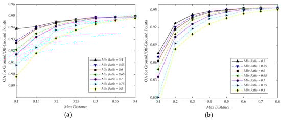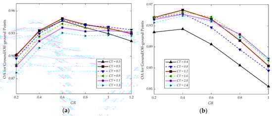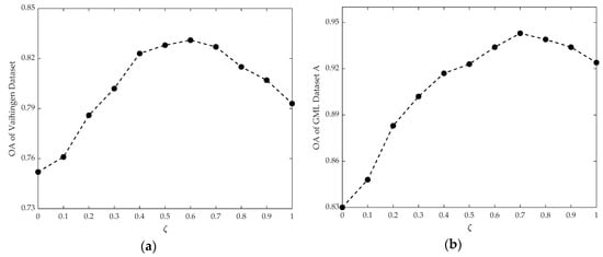 (a) The trends of the OA with parameter in the Vaihingen Dataset; (b) the trends of the OA with parameter in the GML Dataset A.