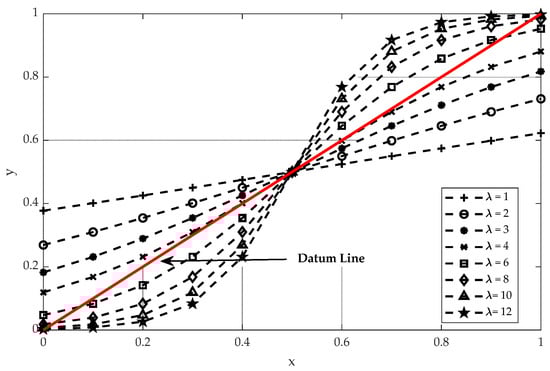 In the LCS-CRF model, the higher-order potentials are derived with semantics cues based on a Sigmoid function. Two parameters are utilized to determine the formulation of Sigmoid function, and they are, respectively, denoted as and . Parameter mainly controls the scaling of Sigmoid function, while controls the translation. In this section, we also normalize the cluster-based features into [0,1], and then parameter is set as 0.5 to consist with the distribution of cluster-based features. The expression of Sigmoid function with different values of parameter is shown in Figure 15. The datum line is represented by a red straight line, which is treated as a reference to Sigmoid function. It means that the values of cluster-based features are directly used for the calculation of higher-order potentials. Different curves in the figure represent the projection values of cluster-based features through Sigmoid function with different . We employ Sigmoid function to enhance the discrimination of the cluster-based features to obtain a better classification result. However, there have been a few misjudgments in terms of cluster-based features, which are utilized to obtain the higher-order potential based on the regulations described in Section 2.3.3. Then, the corresponding analysis for parameter is given to test its effect in the LCS-CRF algorithm.