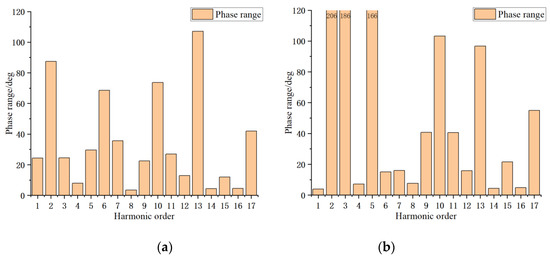 Phase range of harmonics in each order of angle error of joint modules: (a) joint module a; (b) joint module b.