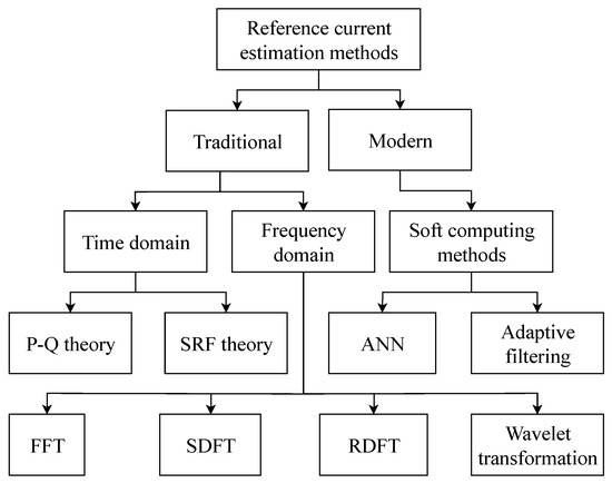Figure 1 shows the basic distribution of SAPF algorithms for harmonic component extraction, which are generally divided into three basic groups: time-domain [24,25,26], frequency-domain [27,28,29], and soft computing methods [30,31].