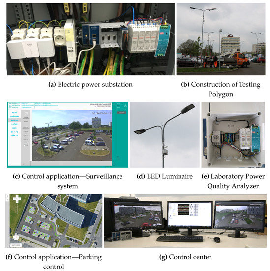 It follows from the above that the issue of network interference in modern street lighting is a very topical matter. In response to these problems, the BROADBAND test polygon was built in the parking lot next to the Faculty of Electrical Engineering and Computer Science at the VSB–Technical University of Ostrava Campus [16,19,20,21]. The test polygon allows testing of new street lighting technologies; measuring their impact on the power quality in various operating states [22]; and, in the future, also testing active filtration [23].