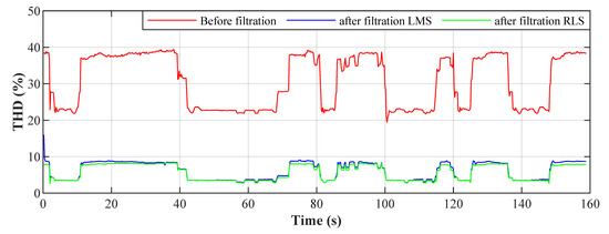- Martinek, R.; Rzidky, J.; Jaros, R.; Bilik, P.; Ladrova, M. Least Mean Squares and Recursive Least Squares Algorithms for Total Harmonic Distortion Reduction Using Shunt Active Power Filter Control. Energies 2019, 12, 1545. [Google Scholar] [CrossRef]