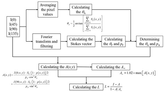 Four polarized images are first captured by the polarimetric imaging system. They can be represented as I(0; x, y), I(45; x, y), I(90; x, y) and I(135; x, y), where the number represents the polarized orientation of the linear polarizer and (x, y) represents the coordinate of the pixels. Then, the Stokes vector can be obtained as: