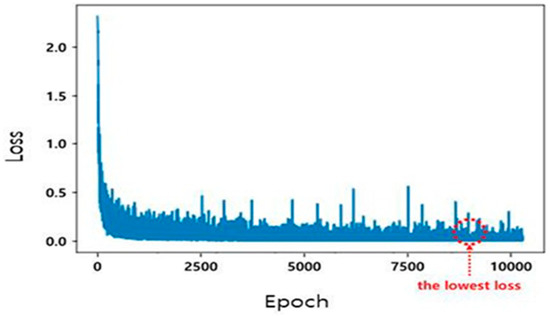 Figure 15 shows the loss that resulted in the repetitive learning process for the PASCAL VOC 2012 database. A total of 4318 datasets were learned, and the smallest loss in 10,000 epochs was selected.