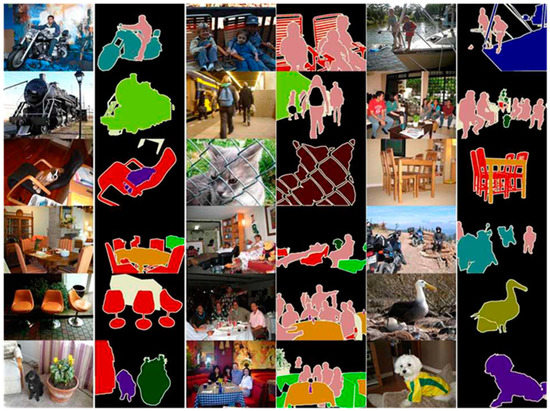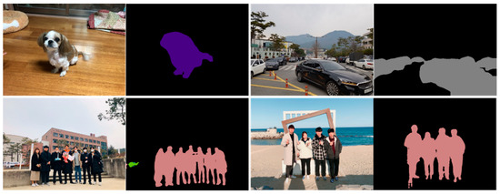 The PASCAL VOC 2012 [34] database is composed of 20 classes in total; Figure 4 shows images from each class. In this study, we acquired the images provided by the PASCAL VOC 2012 database to evaluate the semantic segmentation method objectively. The sizes of all semantic segmentation images used in this experiment were adjusted to 513 × 513 for consistency.