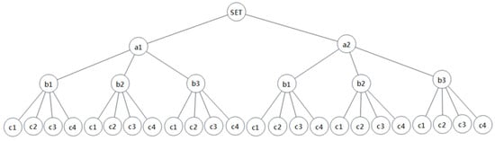 The structure of the policy decision tree shown in Figure 2 may be varied, and the order of policy retrieval can be A–B–C, A–C–B, B–A–C, etc. After introducing the depth index, the structure of the policy decision tree is shown in Figure 3.