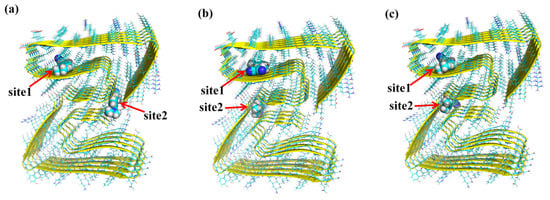 Binding sites of (a) P1, (b) P2, and (c) P3 in β-amyloid.