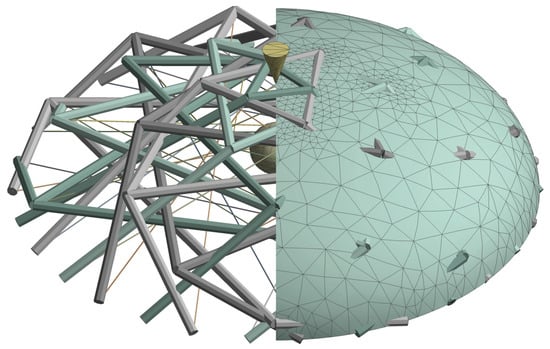- Zhang, J.; Ohsaki, M. Adaptive force density method for form-finding problem of tensegrity structures. Int. J. Solids Struct. 2006, 43, 5658–5673. [Google Scholar] [CrossRef]