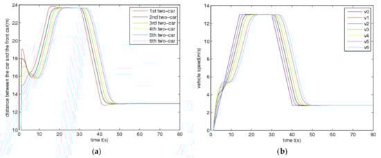 Considering the desired safe spacing in Equation (4), we have the Laplace transform of the spacing error and the relative velocity of adjacent vehicles, respectively