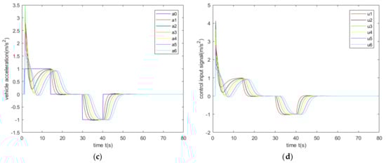 Note that the linear model equation (3) can be viewed as the upper layer cruise control systems in the double layers hierarchical control structure used widely by CACC systems, e.g., [,,]. In this control structure, the nonlinear equations in Equation (2) are seen as the lower layer controllers of vehicles and are generally assumed to be perfectly designed in CACC systems although the aerodynamics drag force (0.5σYifdiv2) is usually hard to estimate perfectly due to unknown coefficients of drag [,]. In this paper, we focus ourselves on the upper layer cruise control systems in Equation (3) by assuming the desired control performance of the lower layer controllers of vehicles.