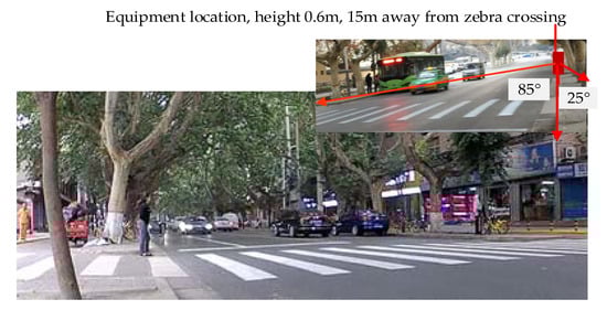 All data observation and collection experiments were conducted on sunny days to avoid the influence of the weather. From 2016 to 2018, several data collections were carried out in May each year, with each collection period lasting 1 h. Collection periods included morning and evening rush hours, and more than 90 h of experimental data were obtained in total.