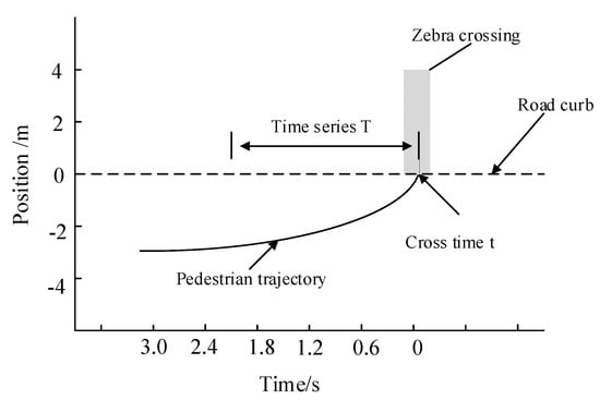 - The instantaneous time t is taken as the starting point, then the time series parameters of pedestrian T s before crossing the curb is reverse extracted (the parameters are described above), as shown in Figure 5.