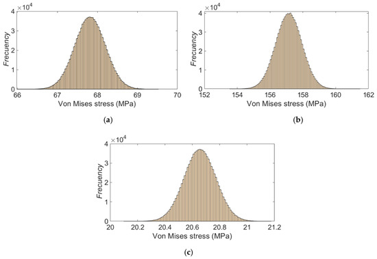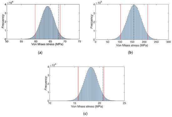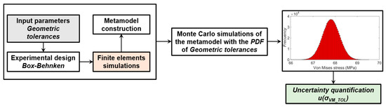 The probability density function for these sources of uncertainty has been considered as normal. As in the previous section, the uncertainty of the Von Mises stresses has been calculated from the random resampling of the possible values of the geometric tolerances in the constructed metamodel. The statistical magnitudes of the final stresses were calculated following the procedure recommended by GUM [14] for a confidence level of 95%.