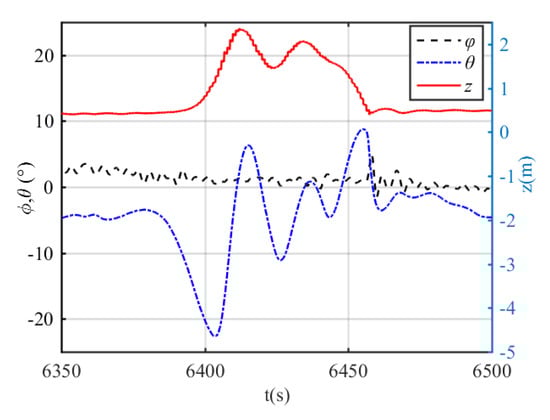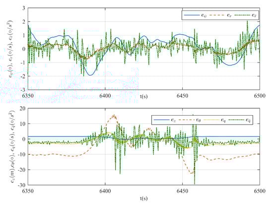The heading and depth tracking results are shown in Figure 14 and Figure 15. It can be seen that the proposed DIFC controller can regulate the xAUV to the desired heading and depth, but there is minor fluctuation in the process. Basing on the results, it is unjust to conclude that the control performance of DIFC is awkward, because the surge velocity is 2 kn and the rudder effect is too weak to stabilize both heading and depth for the xAUV weighed over 235 kg. Therefore, it is reasonable that the xAUV can’t track the desired depth and heading with high accuracy at this relatively low velocity. Unfortunately, tests at higher velocity are prohibited in this towing tank for safety, but according to the simulation results, it should be supposed that a better control performance can be expected if the velocity is increased. Errors in every loop of DIFC are shown in Figure 16. Since the DIFC only operates at the second stage, errors between 6400 s and 6445 s should be used for analysis. In this period, the errors are fluctuating around zero which verifies the convergence of every control loop.