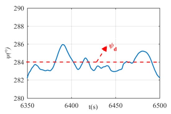 where the heading ψ is usually described as ψ [ 0 , 2 π ] . In practice, heading error needs to be modified to deal with heading discontinuity, and the modified expression is presented as: