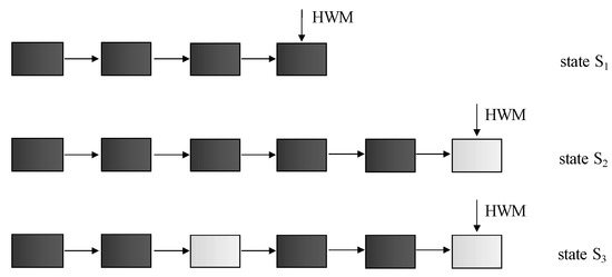 In the previous paragraphs, the principle of master index definition selection is described. For now, it is necessary to explain the principle of data access. The TAF method principle is characterized by the sequential scanning of all data blocks associated with the table. It uses the fact that the individual blocks are formed in the extent shape, which is linked together [24,25,26]. As described, for the processing and evaluation, the block is always loaded into the memory, even if it does not include relevant data for the query and if it is empty. Thus, in the first phase of the development of own approach, the aim is to remove such blocks from the evaluation. Our firstly defined solution is based on two sides linked list. Each block then consists of the information about the fullness of the direct following block (model 1). Thanks to that, the empty block is skipped from the evaluation. The disadvantage is the necessity to store the two-way linked list and modification of the whole path after the change on the block level, as well. Our second proposed solution (model 2) has improved the original approach by storing the pointer to the next used data block. In this case, the two sides linked list is used. The principle is shown in Figure 6. Black block is occupied, while white is free. Let’s assume that the third and last associated blocks are empty. Bold arrows indicate added pointers to the other blocks. While the last block is free, the fifth can point either to the same (fifth block) or NULL pointer that can be used regarding the consecutive way of evaluation. NULL is better from the size point of view but worse for the management.