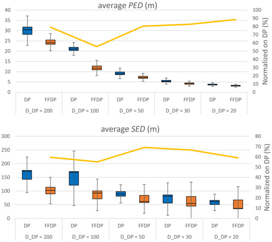 Measurements of perpendicular Euclidean distance (PED) and synchronized Euclidean distance (SED).