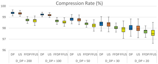 Performance comparison of Douglas–Peucker (DP) and uniform sampling (US) algorithms.