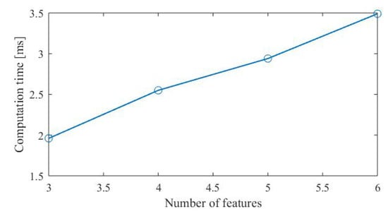 We tested the time-consuming optimization calculation on a computer with an Intel (R) Xeon (R) E5-2620 v4 @ 2.10GHz processor, as shown in Figure 11. It can be seen that as the number of features increases, the calculation time increases in a linear fashion, which is consistent with our analysis. In most cases on the real-world scenarios, the number of features is between 4 to 6, so the pose estimation will not cost too much time. The most time-consuming part of the whole process is semantic feature detection. We introduce a visual odometer to ensure real-time localization. As for the real-time performance of the whole algorithm, we will give the experimental results in the experimental part.