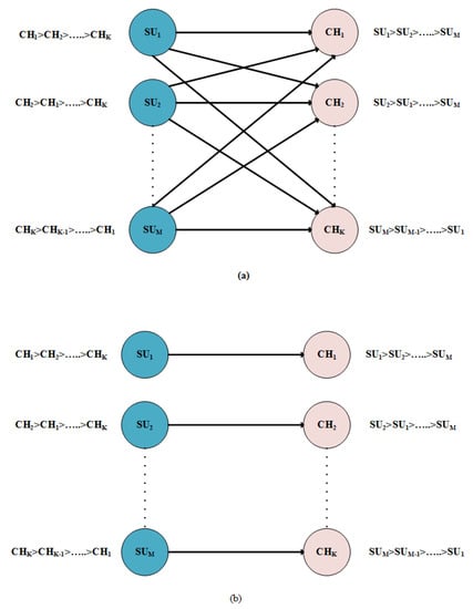 - Sayantan, C.; Pan, J. Channel Assignment in Cognitive Radio Networks: A Joint Utility and Stable Matching Approach. In Proceedings of the 26th International Conference on Computer Communication and Networks (ICCCN), Vancouver, BC, Canada, 31 July–3 August 2017. [Google Scholar]