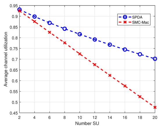 Average channel utilization at different number of SU.