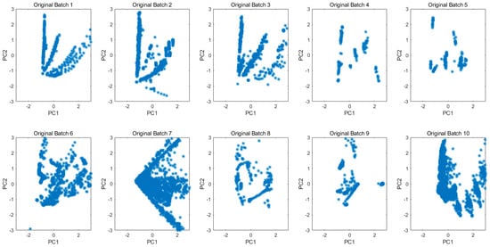 Principal component space of 10 batches for all original data.